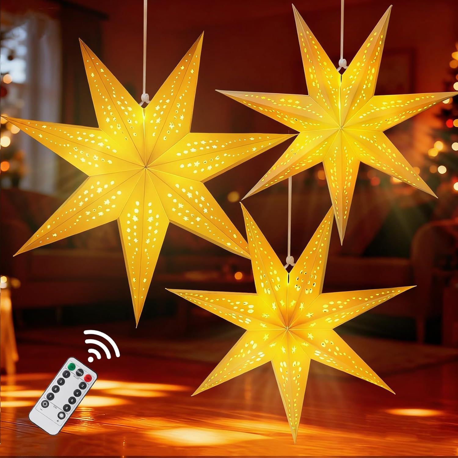 Whether you're creating festive magic in your home or planning a special event, this paper star lantern set offers timeless style and reliable, enchanting illumination. Delight yourself and your loved ones with decorations that bring joy, warmth, and sparkle to every celebration.